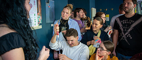 Mit dem neu geschaffenen JMU Communicator Preis zeichnet die Universität Würzburg erstmals ein Projekt aus, das Wissenschaft auf besonders gelungene Weise einer breiten Öffentlichkeit näherbringt. Die Premiere des Preises geht an den Würzburger „Science Pub“, ein Format des SciCom-Cafés, das Forschung für einen Abend aus dem Hörsaal in eine Bar verlegte.