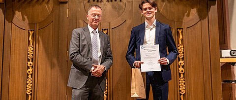 Im Rahmen der Examensfeier der Wirtschaftswissenschaftlichen Fakultät werden den Absolventinnen und Absolventen jedes Semester ihre Urkunden überreicht. Dabei erhalten diejenigen mit den besten drei Bachelor- und Master-Abschlussnoten eine Auszeichnung der Georg-von-Schanz-Gesellschaft.