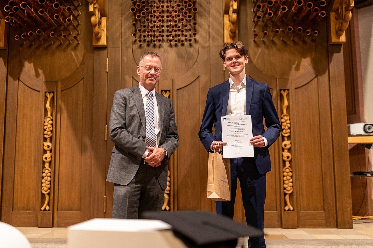 Magnus Michel: Da gibt es gleich mehrere Personen, denen ich sehr dankbar bin. Fachlich haben mich von Anfang an die Module von Prof. Dr. Flath begeistert, da man hier früh aktiv mitarbeiten konnte und Themen wie Data Analytics genau meinen Nerv getroffen haben. An seinem Lehrstuhl durfte ich auch meine Bachelorarbeit schreiben. Hier hat mir mein Betreuer Robin Derzbach eine spannende Arbeit sehr nah an der aktuellen Forschung ermöglicht.