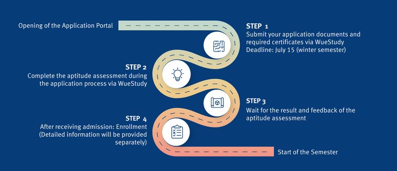 The Master's degree programme in Entrepreneurship & Innovation always starts in the winter semester of each year. The application deadline for the winter semester ends on 15 July and is made via WueStudy.