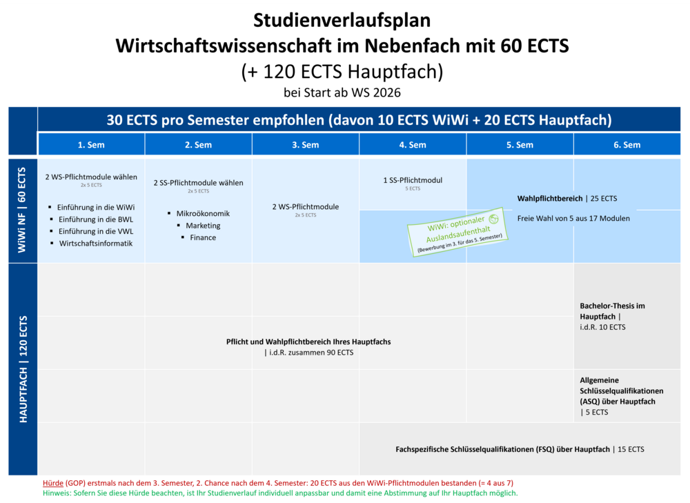 Aufbau Ihres interdisziplinären Bachelors Wirtschaftswissenschaft als Nebenfach
